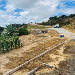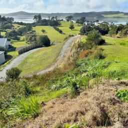 This 4579sqm / 1 ¼ acre section with metalled driveway to a partially-levelled building platform, another level area tucked away closer to road level, for garaging and boat parking.