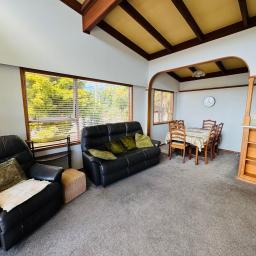 This sunny, two level, 3 bedroom has had just two caring owners, one since the mid 90s. It has recently been renovated, with new roof, interior re-paint and new carpet upstairs and down. The home is set back from the street on a level section, with lovely mature trees giving valuable privacy and an upstairs deck offering pleasant views over Pukenui village to the harbour. Handy internal entrance off the carport plus exterior stairs to the upper deck and living room. Interior features native timber. Off street parking, garden shed. Shops and school just a short walk away and so easy to pop down to the harbour for a fish at the wharf or stroll along to the Pukenui Pacific Café or the Big Game Fishing Club Sandbar Restaurant for an evening meal. Viewing by appointment.