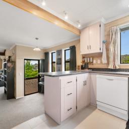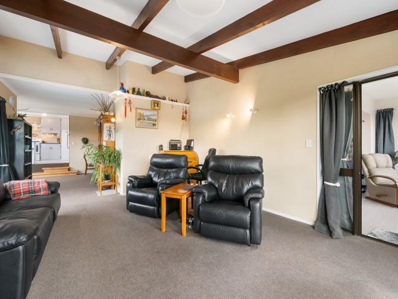 Discover warmth, space, and potential in this inviting 3-bedroom home designed for relaxed living. Upstairs, the light-filled living area features striking exposed beams and seamlessly opens through stacker doors onto a generous front deck — the perfect spot to unwind and enjoy sweeping views.