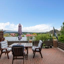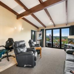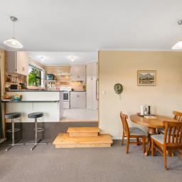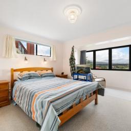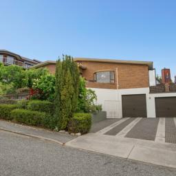 Comfort is ensured year-round with two heat pumps and gas hot water. The double internal-access garage sits on street level for easy entry, while upstairs living takes advantage of the outlook and elevation.