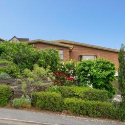 Outside, established landscaping showcases unique rock formations and a variety of fruit trees — a private haven for gardeners and nature lovers alike.