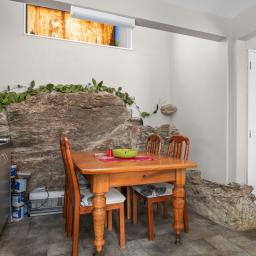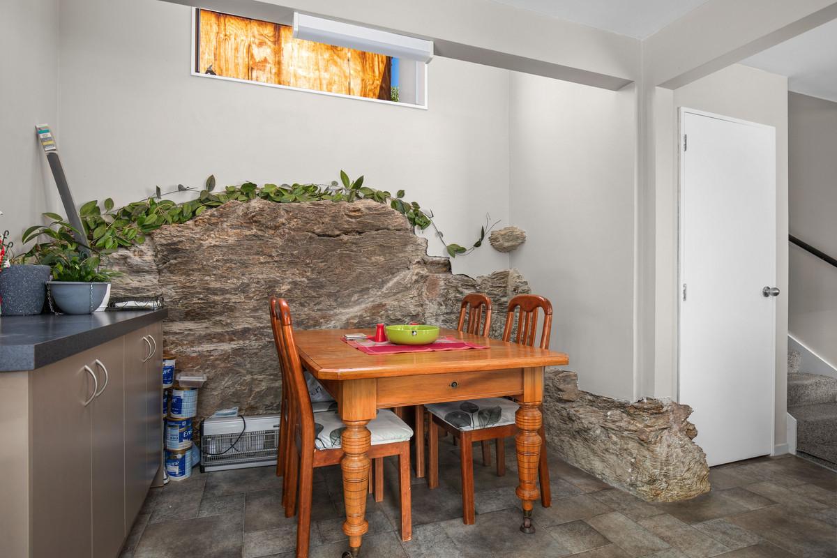 The kitchen, dining and living area form the heart of the home featuring a cosy log burner and a striking natural schist wall that anchors the dining space with timeless charm. Completing the lower level is a bedroom, bathroom and combined laundry, ideal for guests, family or flexible living arrangements. Upstairs, you'll find four additional bedrooms including one with its own private nook and deck, your own retreat to relax or unwind with a book.