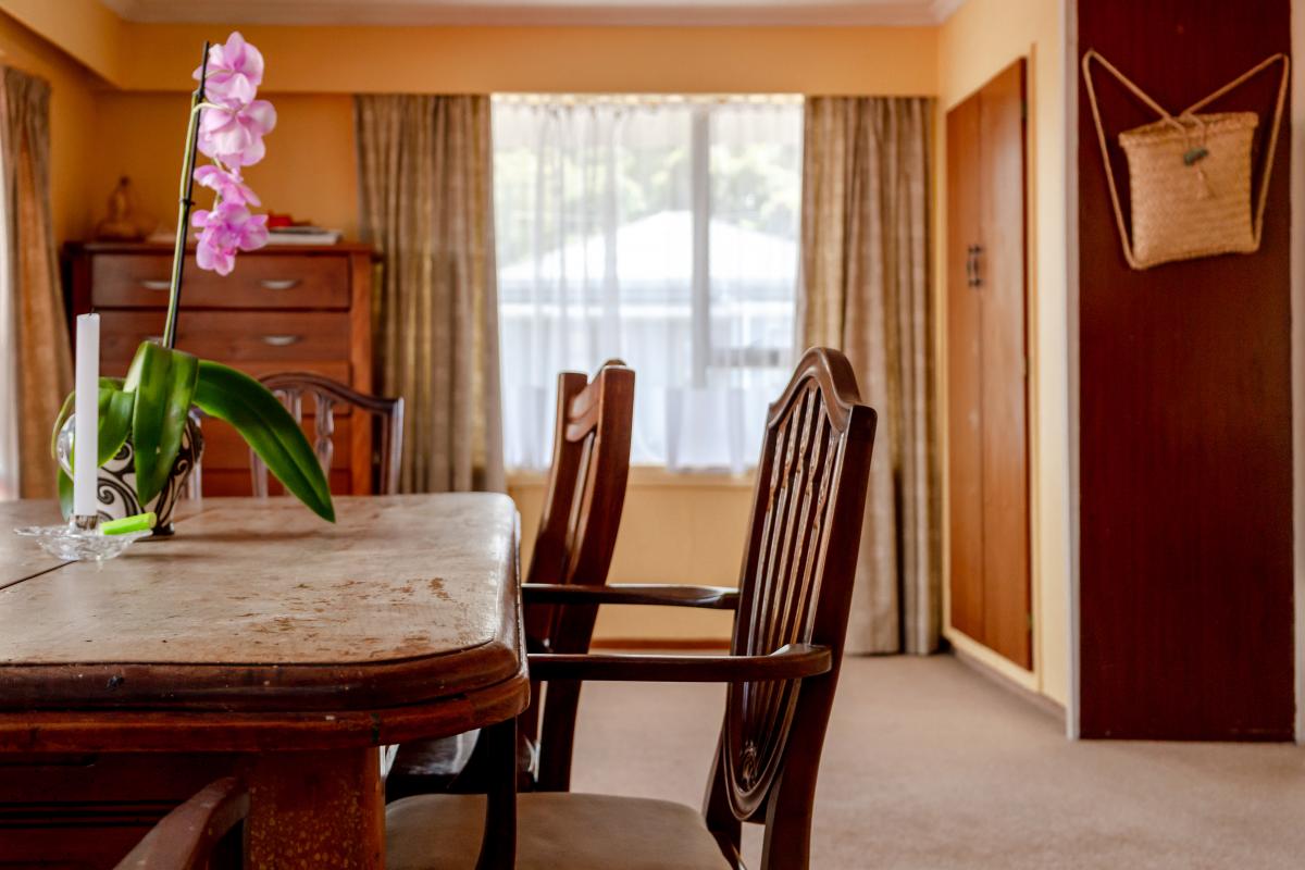 Clad in low maintenance Hardiplank, the home offers open-plan living, a light-filled conservatory, and a single internal-access garage — all the essentials for easy, low-fuss living. The kitchen and living areas connect well and offer potential to modernise over time, while the glasshouse and compact yard are great for garden enthusiasts or those chasing a bit of green-thumb therapy without the full workload of a large section.