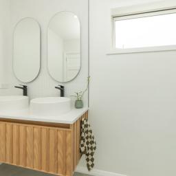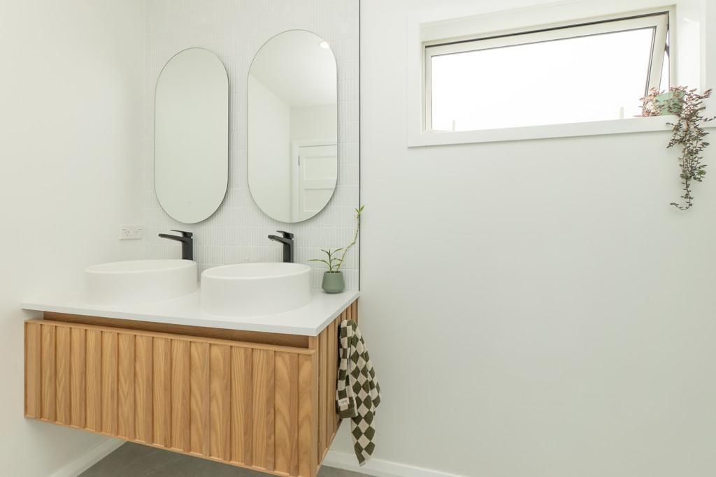 The master suite is a private sanctuary with a generous walk-in wardrobe and a stunning new ensuite featuring twin floating vanity, backlit mirrors, and a large shower. The main bathroom, with shower-over-bath and separate toilet, caters perfectly to busy households.