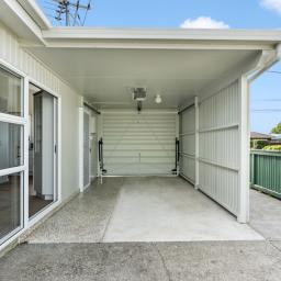 The single carport with an automatic door adds everyday convenience, providing covered parking or additional storage, while the rear fully fenced section gives a sense of privacy and security, ideal for pets or anyone wanting outdoor space without the upkeep.