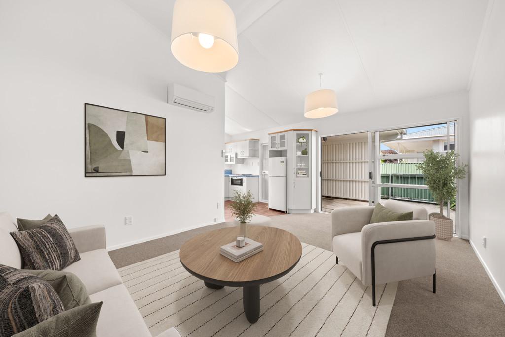 The layout is smart and functional, centred around a warm open plan living space that feels surprisingly generous thanks to the high stud ceilings. The two bedrooms enjoy good natural light and offer practical spaces for day to day living.
