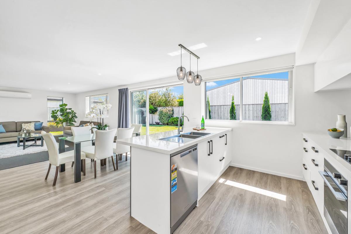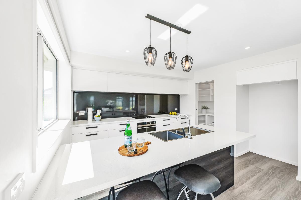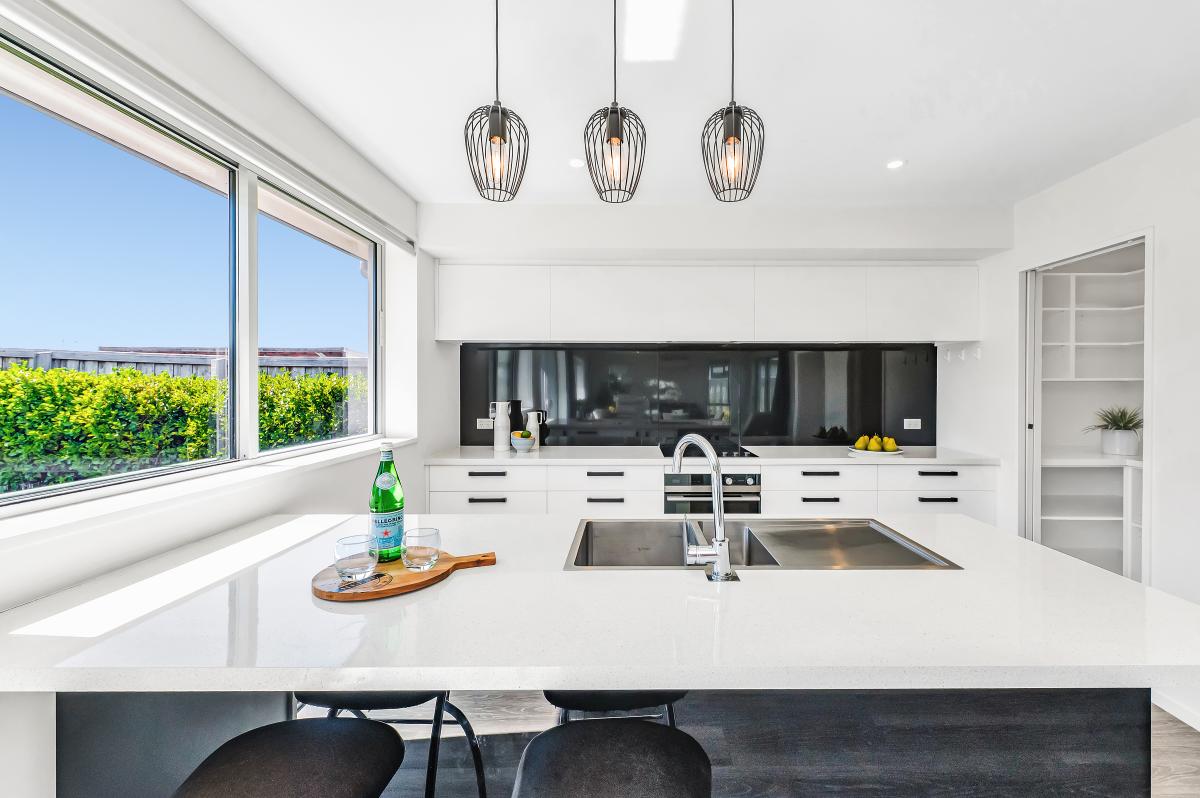 The heart of this home is the sleek, open-plan kitchen with walk-in pantry – a contemporary entertainer's dream and the natural gathering point for family life. Flooded with natural light, the living spaces seamlessly blend style and function.