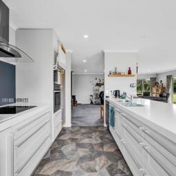 A welcoming four-bedroom home with ensuite offers comfortable family living with rural vistas. The home sits privately within mature grounds and allows seamless access to the farm hub, supporting both lifestyle and farming practicality.