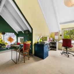 Upstairs offers three comfortable bedrooms and a family bathroom, while a sun-filled office overlooking the expansive gardens creates the ideal spot to work or relax.