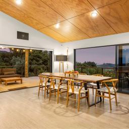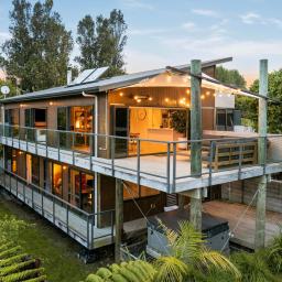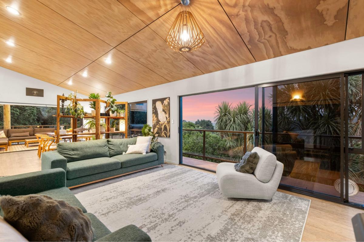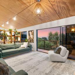Set among the foothills of Papamoa, this multi-level lifestyle home draws on its elevated outlooks, native bush surrounds, and sense of balance, embracing picturesque views across the bush to the coastline beyond.