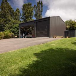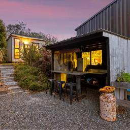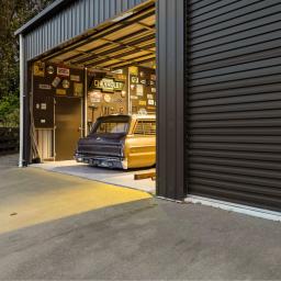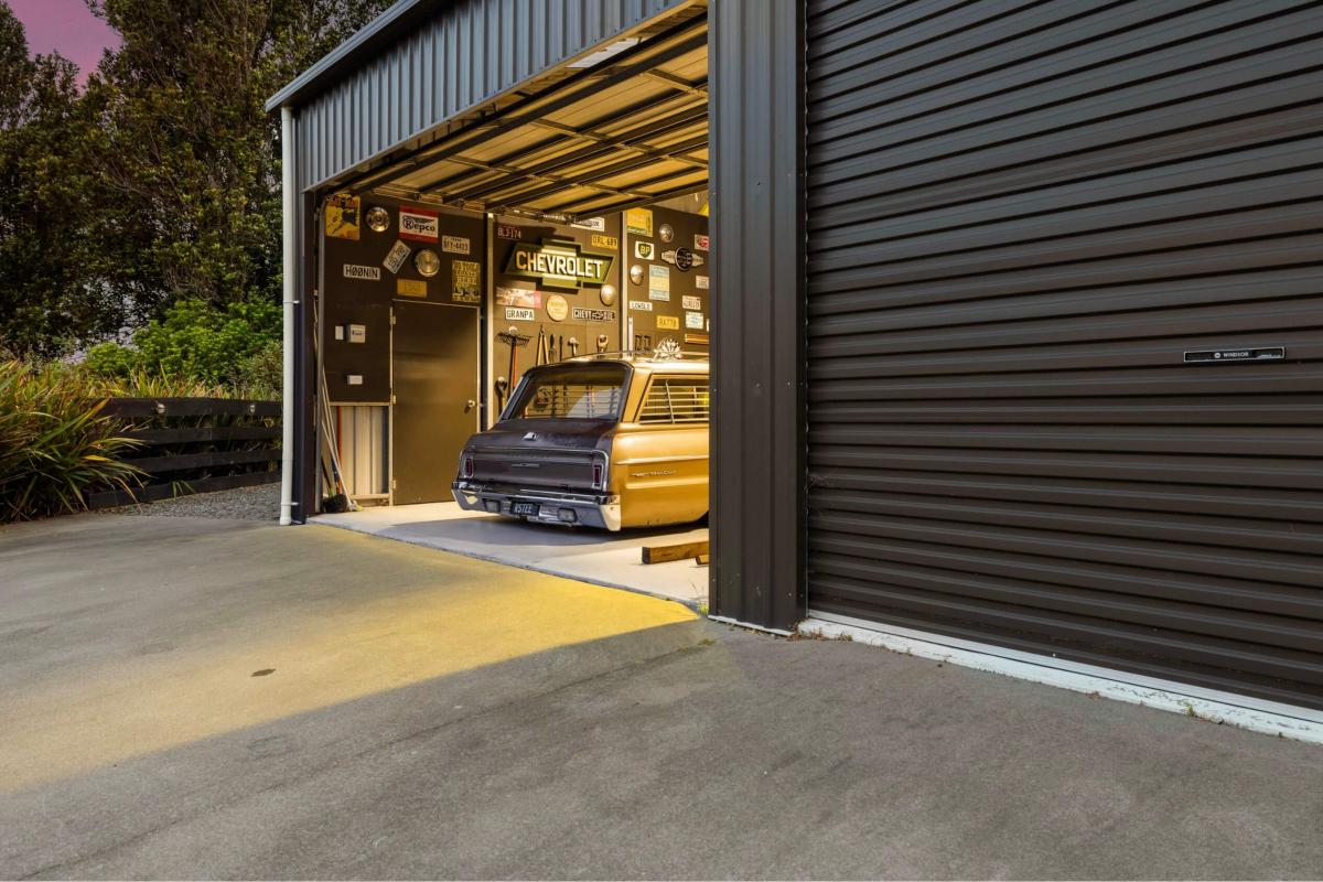 Practicality prevails at every corner of the property. The large high-clearance garaging provides extensive storage for family toys, a workshop, and the never-ending project car. In the top corner of the section behind the garage, a separate sleepout sits beside a small orchard of fruit trees, adding versatility for working from home or temporary guest accommodation.