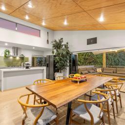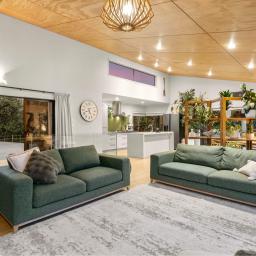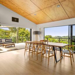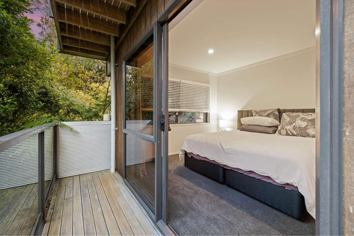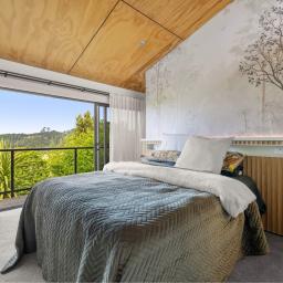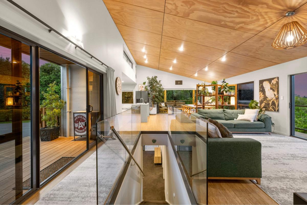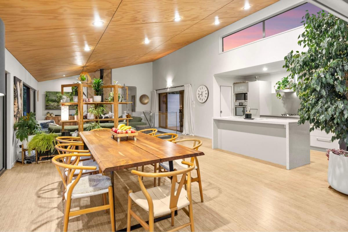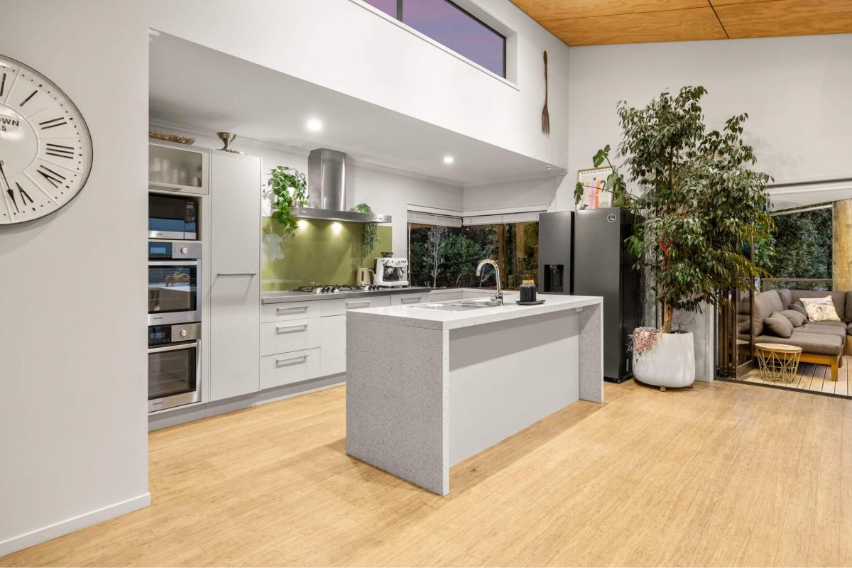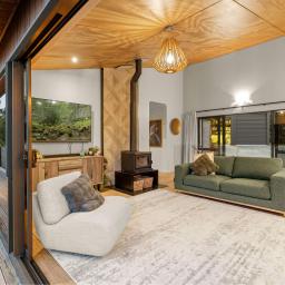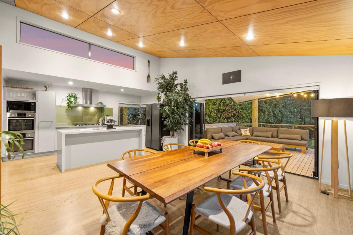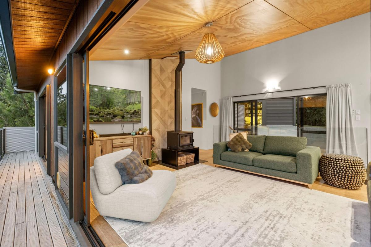 This is a home shaped by calm and connection. Days begin with birdsong rising from the valley below, and evenings settle gently across the decking as the last of the light filters through the native canopy. There is a quiet rhythm here that renews the spirit, a place where stepping outside feels like taking a breath.