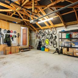 • Family-friendly flat lawn, fully fenced section and garden shed.