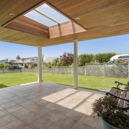 Back downstairs, the layout has been thoughtfully created for families who love to gather and entertain. The kitchen is roomy and welcoming, flowing easily to the family dining space and a separate lounge. Each of these areas connects seamlessly to the covered outdoor patio, making it ideal for hosting friends, enjoying summer meals, or watching the kids play.