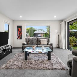 Owners are downsizing ready to move. Meticulously constructed to the highest post-quake standards, this superb four double-bedroom, two-bathroom residence offers the ultimate blend of executive quality and convenience. Designed for flexible family living, the property boasts two living rooms, including a generous open-plan living/dining area and a separate lounge. The heart of the home is the high-quality kitchen, featuring sleek glass-laminated finishes, premium BOSCH appliances, and elegant GROHE tapware. Comfort is paramount with two heat pumps, LED lighting, and luxurious touches like tiled showers and under-tile heating in the bathrooms.