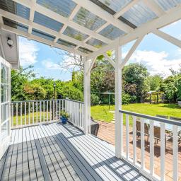 At the heart of the home is the open-plan kitchen and dining area—an inviting space where everyday life unfolds with ease. The modern kitchen, with its clean lines and thoughtful layout, provides an inspiring place for culinary creativity. To the rear of the space is a delightful sitting area, with french doors opening onto the rear deck.