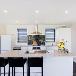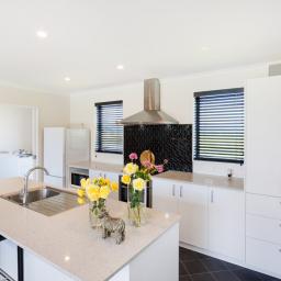 Open-plan living, dining and kitchen area complete with ample storage and an island bench fit for family living and entertaining.