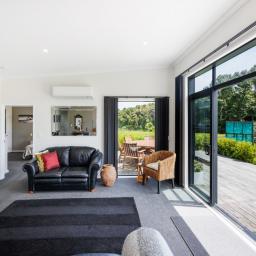 Seamless indoor/outdoor flow to the expansive decking area adds to the appeal, ideal for entertaining, relaxing, and soaking in tranquil rural and native bush views.