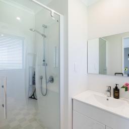 The family bathroom is well-appointed with a shower, vanity and toilet.