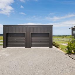 The high-stud, large double garage provides extra space for car enthusiasts, storage, or hobbies.