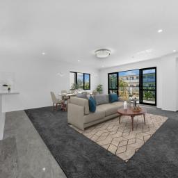 Light-filled open-plan living, dining, and kitchen area perfect for family time and entertaining