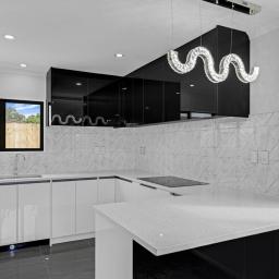 Granite kitchen benchtop with soft-close drawers, quality appliances (oven, dishwasher, rangehood, waste disposal, fridge tap, under-mounted double sink, footlights & built-in rubbish bin)