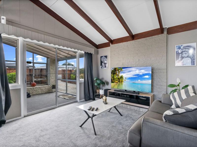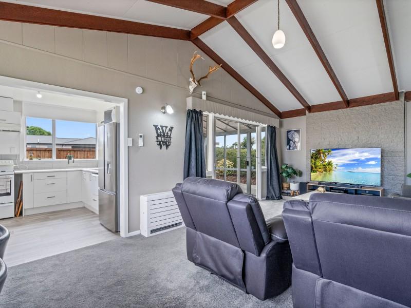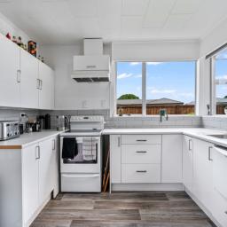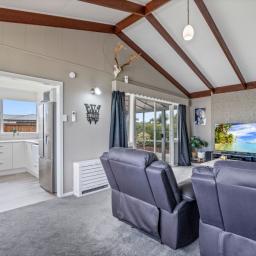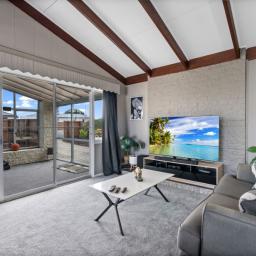 Inside, the upgrades continue. Fresh carpet and vinyl throughout create a modern, welcoming feel, while gas hot water and a new heat pump ensure year-round comfort. The sleek, modern kitchen flows effortlessly into the open-concept living area, where a sliding door extends the space into a generous conservatory - perfect for relaxing or entertaining.
