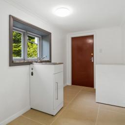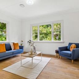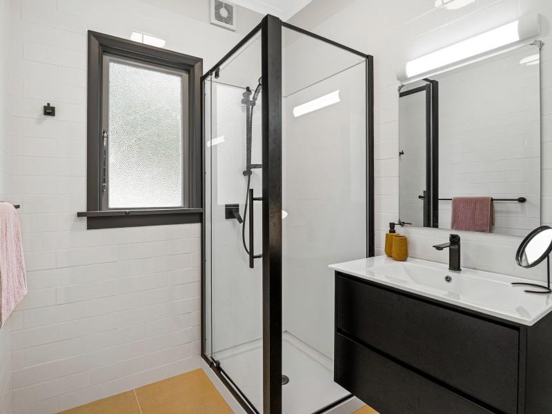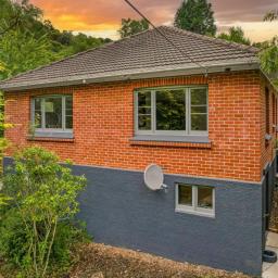 Step inside to warm wood flooring, neutral carpet, and a modern kitchen that connects effortlessly to the light-filled living room, where tranquil bush views create a sense of calm year-round. All three bedrooms are generous doubles, with two featuring large built-in wardrobes. The sleek, contemporary bathroom, paired with a separate toilet, adds everyday convenience, while a heat pump ensures easy climate control. The basement level includes a functional laundry and is adjacent to excellent storage.