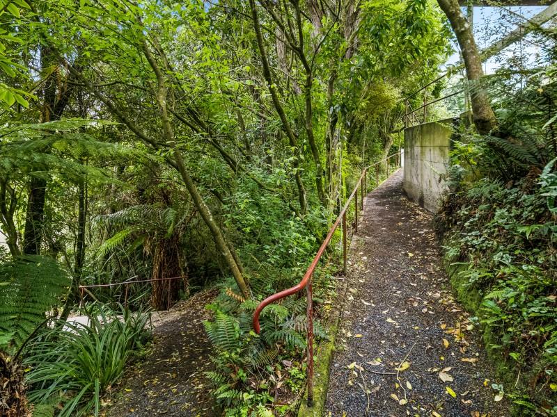 Out back, a paved entertaining area provides a sheltered spot for outdoor dining, and the terraced yard offers exciting potential for developing vegetable gardens or vibrant flower beds.