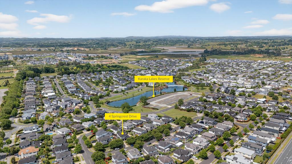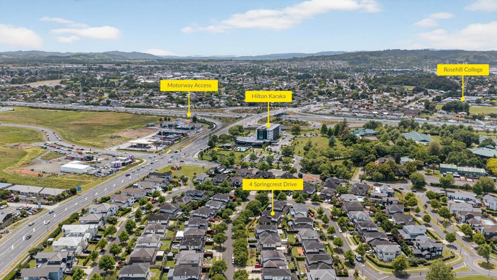 Nestled on the double tree lined street of Springcrest Drive, this beautifully crafted family home delivers an exceptional Karaka lifestyle, seamlessly blending modern architecture with stylish, comfortable living. Every detail has been thoughtfully designed to create a home that feels both relaxing and effortlessly functional. With five generous bedrooms and three beautifully appointed bathrooms, there's plenty of space and privacy for the whole family.