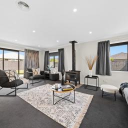 Inside, you'll find modern fixtures, light-filled living spaces, and a seamless flow that makes everyday life effortless. The open-plan design connects the kitchen, dining, and lounge areas, creating the perfect hub for family living or entertaining. Modern kitchen with butlers pantry. Full insulation keeps you snug in the winter along side the wood burner and heat transfer.
