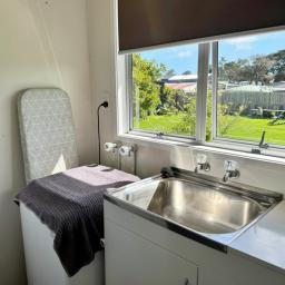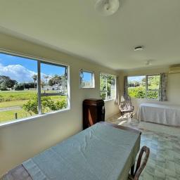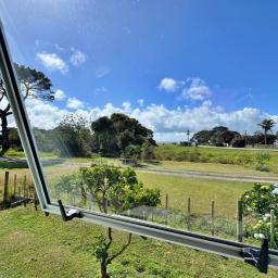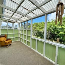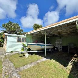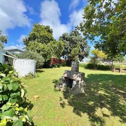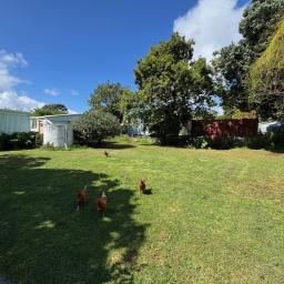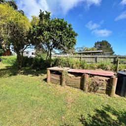 A generous level and sheltered back lawn - ideal for BBQs, camping or planting your own veges - sheltered by a towering Pohutukawa. Fruit trees include feijoa, plum, citrus, guava and a prolific old grapevine. Small garden shed, two water tanks and a bore (not currently connected). Gated and fenced on three sides. Fully code compliant.