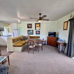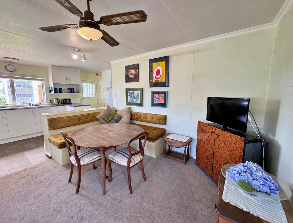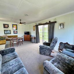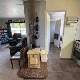 This sunny two-bedroom cottage makes for relaxed living or holidaying. Open plan kitchen, dining and living areas with a chip heater/wetback system, a heat pump and HRV ventilation system. Currently two brms plus a nook, perfect for an office or extra bed. Bathroom with shower, vanity, toilet and laundry. Double garage and double carport.