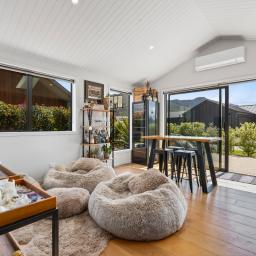Situated in the sought-after Alpine Estate, this highly specced property offers modern versatility with a 3 bedroom, 2 bathroom main home and a fully self-contained 1 bedroom studio. Built with a stylish mix of cedar and plaster cladding, the home presents a contemporary exterior with natural warmth and character.
