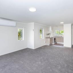 The unit has an open plan kitchen, lounge and dining area, which opens out onto a deck at the back, where you can soak up the sun, in a private backyard and during the winter months keep cozy and warm with the heat pump and the wall heater panel.