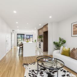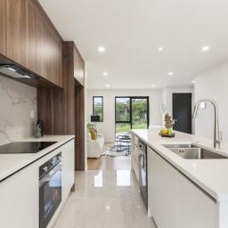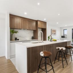 Sun-drenched open-plan living, with sleek kitchen (quality appliances + ample storage)