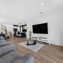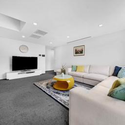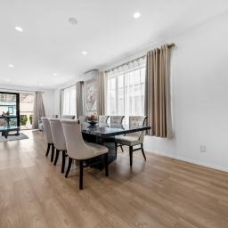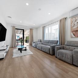 Downstairs you will find an open-plan kitchen flowing into living and dining areas, and a tranquil backyard with a covered deck, perfect for large family gatherings or hosting friends. There is also a granny flat with two well-appointed bedrooms, a bathroom, a separate kitchenette and a private entrance. This setup is ideal for grandparents, teenagers, guests or extra income potential.