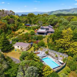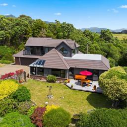 Prepare to be captivated by this truly extraordinary coastal retreat, fully double glazed, newly re-clad in "Nu-Wall" aluminium weatherboard with a new roof. Set on around 5 acres of tranquil, reserve-like surroundings, the home commands sweeping panoramas across the Kapiti coastline. Designed for both relaxation & effortless entertaining, it offers a rare sense of privacy, beauty & space. Light-filled interiors span 2 levels with 4 generous bedrooms & 3 bathrooms. The upper level hosts the master suite opening to a private north-west facing balcony, the guest bedroom has a separate full bathroom. The ground floor provides 2 further double bedrooms & a family bathroom. Floor-to-ceiling glazing enhances the incredible views, with the modern kitchen flowing into expansive living & dining areas & out to sheltered sunny decks. The grounds are alive with birdlife - Tui, Kereru, Quail, Piwakawaka & more - while stunning gardens, orchards & bush walks create a peaceful sanctuary. The heated inground pool brings a resort-like element, & the separate 1-bedroom, 1 bathroom cottage/sleepout of around 65sqm (incl. int/acc gge) adds income, guest or family options. A separate workshop (approx. 50sqm) is complemented by additional sheds & storage.