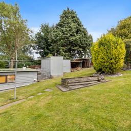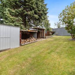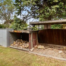 • Ideal tidy back yard with garden sheds, wood sheds and raised garden beds.