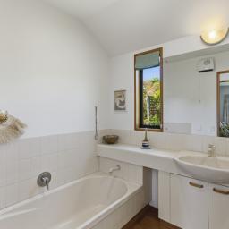 The cedar-clad residence has been meticulously cared for and thoughtfully updated with modern improvements such as double glazing and insulation. Bathed in all-day sunlight, the open-plan kitchen and dining area seamlessly connect to a separate lounge filled with character, an ideal spot to take in spectacular sunsets. The kitchen showcases elegant stone-look benchtops with modern double oven and new induction cooktop. All three double bedrooms open onto a west-facing deck, maximizing views and natural light.