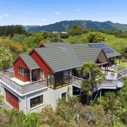 This outstanding home, crafted by renowned architect Alan Minty, offers breathtaking panoramic views across the Kapiti Coast, stretching from the South Island to Mt Taranaki.