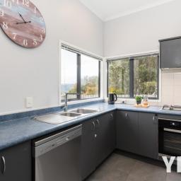 On the ground level you'll find an open plan kitchen and dining area - the perfect space for family meals and hosting friends. The sliding door opens on to a deck, making outdoor entertaining effortless. A spa here would be perfect as you admire the view! Also on this level, a bedroom and bathroom provide flexible living options, ease of movement and added privacy. This is the perfect space for elderly relatives, guests or maybe just for your own quiet space.