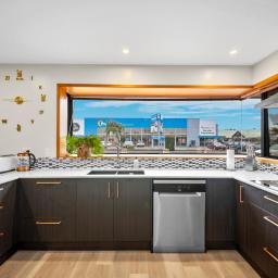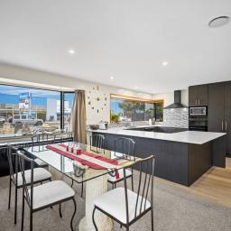 The modern, open-plan layout is ideal for entertaining, featuring an expansive, modern kitchen with a coffee station, plumbed-in fridge, and ample storage, flowing seamlessly to a bright, separate lounge and sun-soaked north-facing deck.