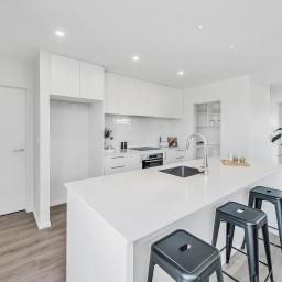 The open-plan living area forms the centre of the home, flowing into a contemporary kitchen with engineered stone bench tops, a walk-in pantry, and quality Bosch appliances, an inviting space for daily routines or entertaining. Sunny outdoor patios extend the living options further.