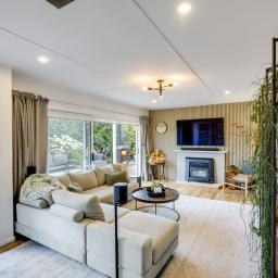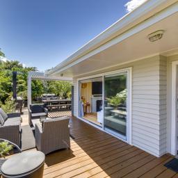 This modernised 1960s family home is well laid out with 3 double bedrooms, 2 bathrooms, a modern open plan kitchen (with Bosch appliances) / dining area. A large double stacker door opens off the comfortable lounge to an impressive large deck, which is perfect for entertaining with a living space and dining area under a remote-controlled louvre roof, and to top it off, an extra-large double garage, this house ticks all the boxes.