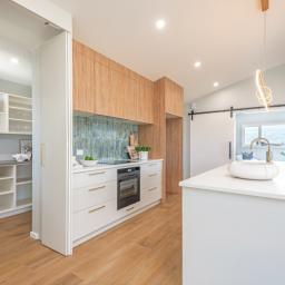 • A spacious, well-equipped stunning kitchen with composite benchtops, quality appliances, and a large hidden butler’s pantry