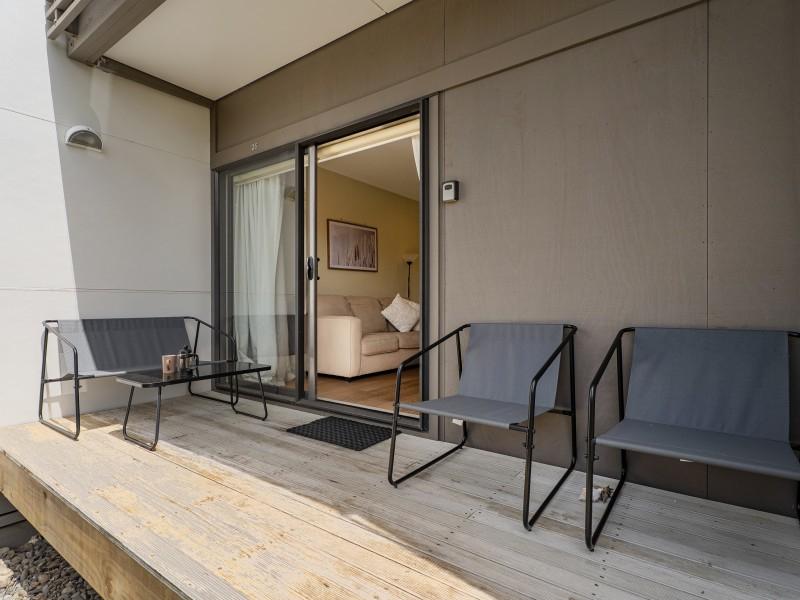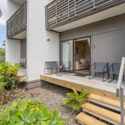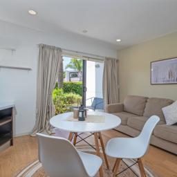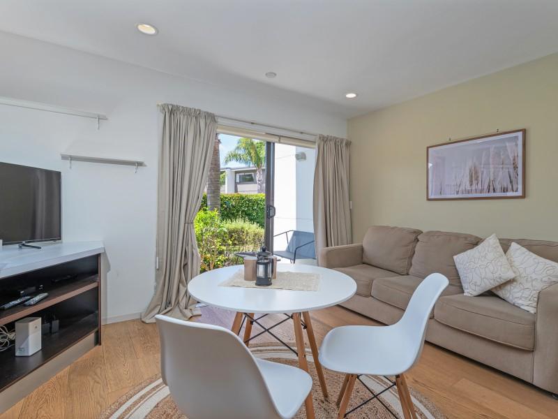 > beautifully presented contemporary one‑bedroom ground-floor villa: easy to maintain, light‑filled; and designed for relaxed beach living
