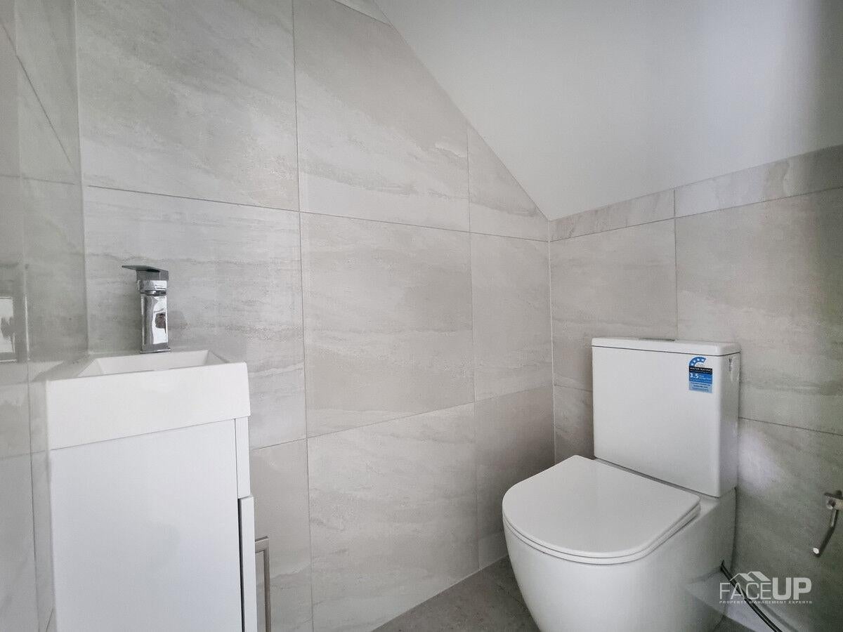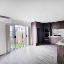 This beautifully designed stand alone house comes with fabulous modern decor throughout, a heat pump and large open plan kitchen, dining and lounge that extends to the outdoor area. For easy maintenance there is artificial turf installed. An additional guest toilet, single internal access garage and a separate laundry cupboard in the garage are also located on this level.
