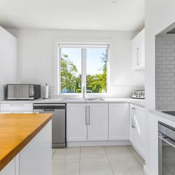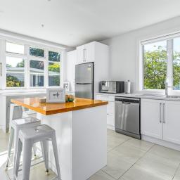 The new kitchen/dining area features modern appliances, good storage and a nice outlook out to the private back yard.