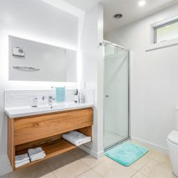 The bathroom has been completely renovated to provide direct access from the master bedroom or the hall. It is complemented by a convenient second toilet alongside. The laundry has also been totally refurbished with modern storage cupboards, new sink and bench unit and includes the front loading washing machine and dryer.